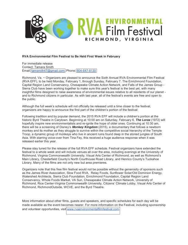 RVA Environmental Film Festival – February 1-7, 2016