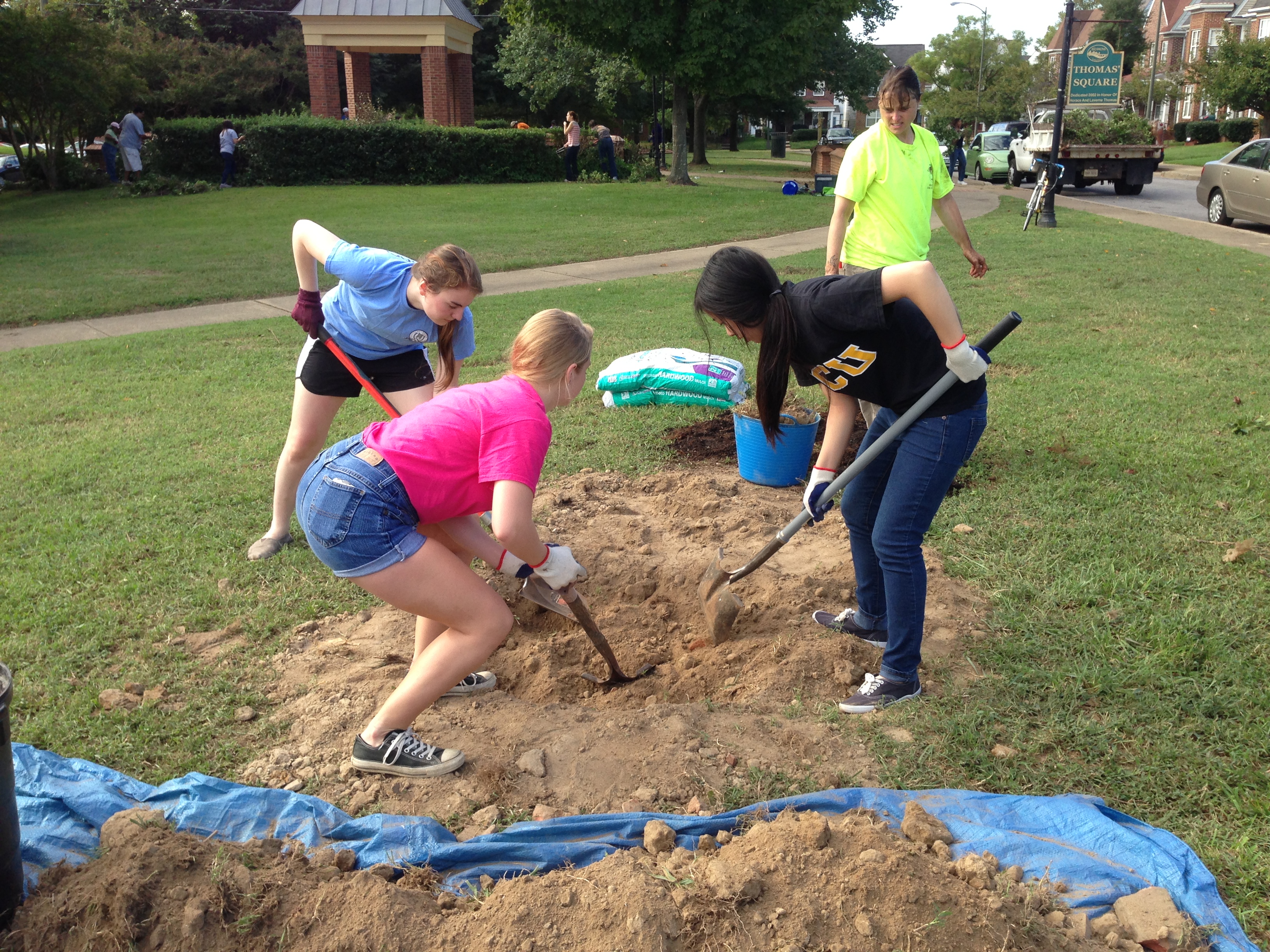 Thomas Square is a small quiet park that features open space, shade trees, and seating areas.