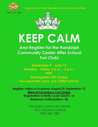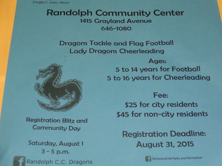 For more information, please contact Mr. Larry Davis at the Randolph Community Center at (804) 646-1080.